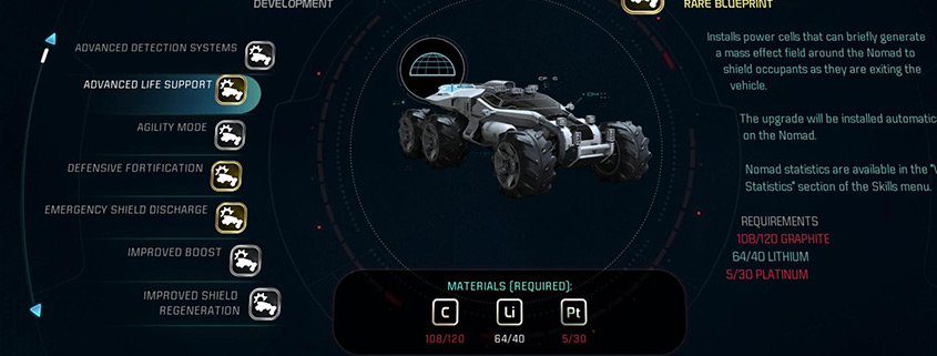 You are going to spend a ton of time in your car driving around mountainous hazardous planets in this game. You want to make this experience as easy as possible so you can have fun actually doing your various quests. Giving the car all of these upgrades will ensure you can travel over hills and jump-boost over gaps without worry. Getting to where you want quickly is very helpful.