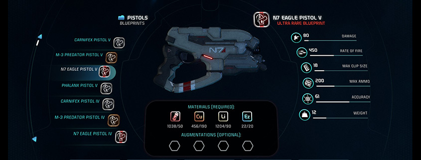 Those are just some of the reason you shouldn’t worry about it until you are good and comfortable. No sense pulling your hair out dealing with the crafting interface just to make a gun you are only going to use for a few missions. A much better idea is to collect junk while experimenting with all the guns you find. Around level 25-35 you will start to understand what you need, at which point you will have enough augmentations, materials and research points to deck yourself out.